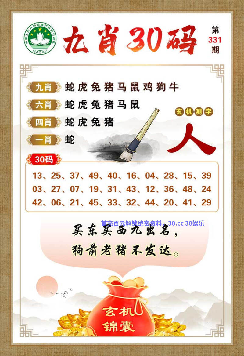 333期:【澳彩30码】中特开鼠06错